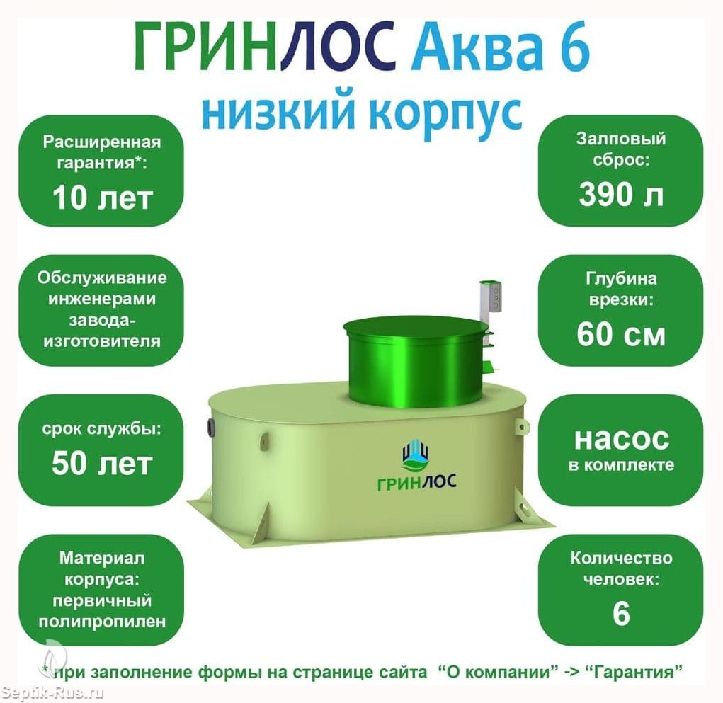 Среди основных преимуществ ГРИНЛОС Аква 6 низкий корпус можно выделить следующие: