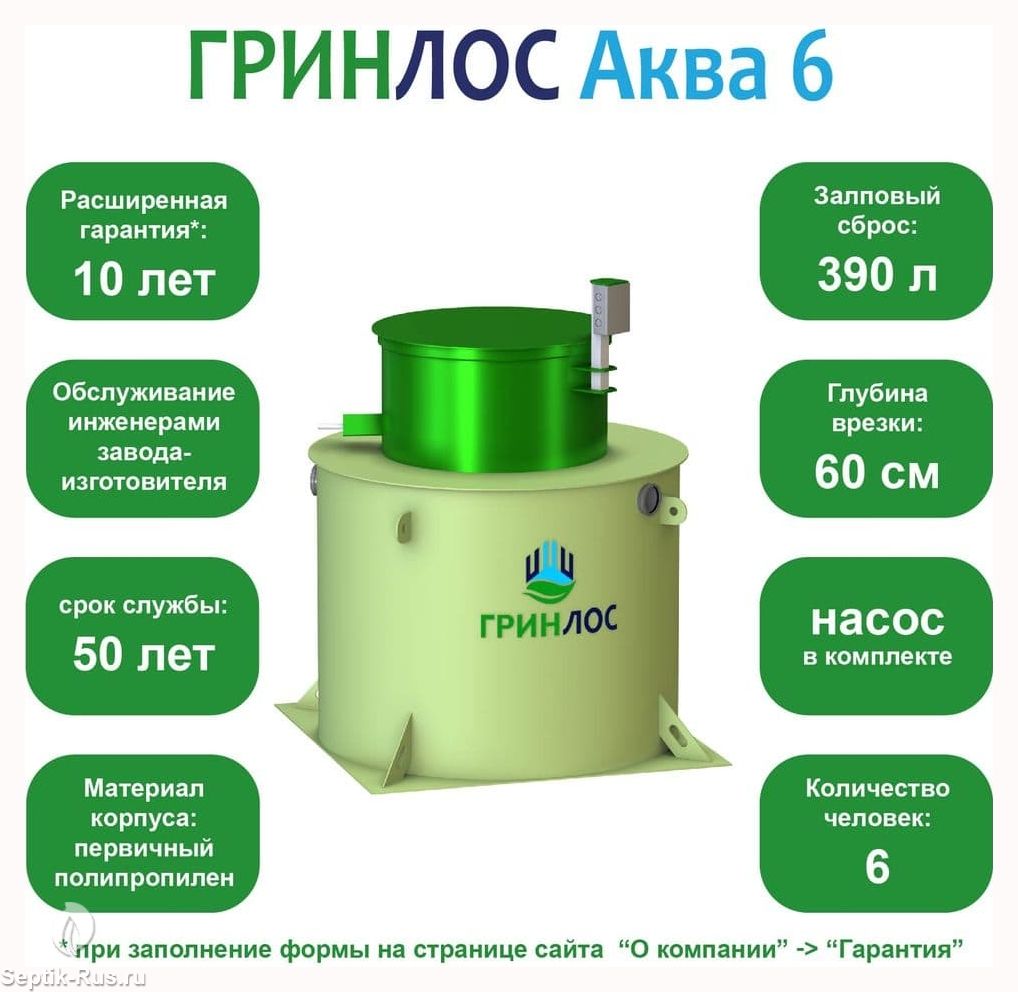 Отличительными особенностями септика ГРИНЛОС Аква 6 являются:
