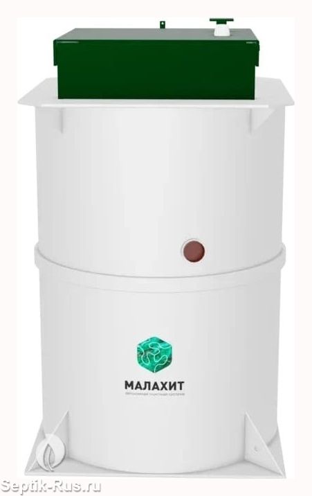 Станция биологической очистки стоков Малахит 4 позволяет обустроить автономную канализацию для 4 условных пользователей и может переработать до 0.9 м3/сутки . Септик рассчитан на неравномерное поступление стоков в течение дня и справляется с очисткой практически всех составляющих хозяйственно-бытовых стоков. Удаление сточной воды в данной модели происходит в самотечном режиме при помощи патрубка отвода очищенных стоков. При выборе месторасположения септика следует учитывать, что глубина врезки подводящей трубы в корпус не должна превышать 70 см.